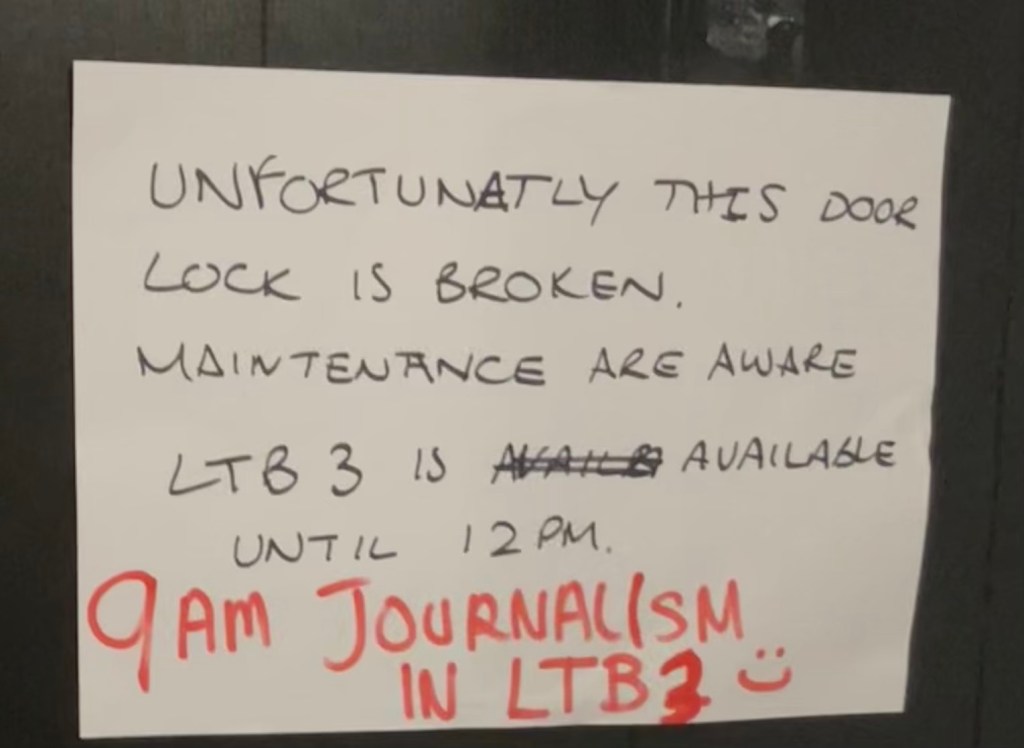 How on earth do you find a classroom location by using an App when the internet is down? When I finally found the classroom, I found this genius physical sign hand-written by a human being. Shockingly clever.